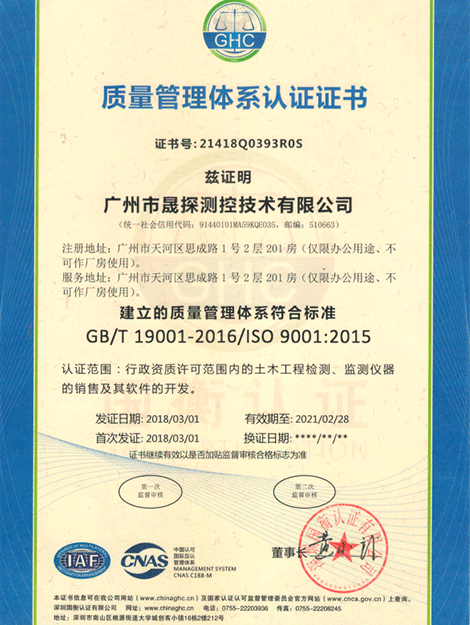 廣州市晟探測(cè)控技術(shù)有限公司是一家集開(kāi)發(fā)、銷售、服務(wù)為一體的高新技術(shù)企業(yè)、致力于工程質(zhì)量檢測(cè)與監(jiān)測(cè)精密傳感器、數(shù)據(jù)采集器、智能傳感器終端等產(chǎn)品的技術(shù)服務(wù)、產(chǎn)品推廣及應(yīng)用。公司的主要產(chǎn)品有:IN1000型無(wú)線藍(lán)牙活動(dòng)式測(cè)斜儀、VSR-1型振弦式數(shù)據(jù)采集儀、SWT-1型振弦式水位計(jì)等。公司側(cè)重技術(shù)的研究和儲(chǔ)備,保持高比例研發(fā)投...